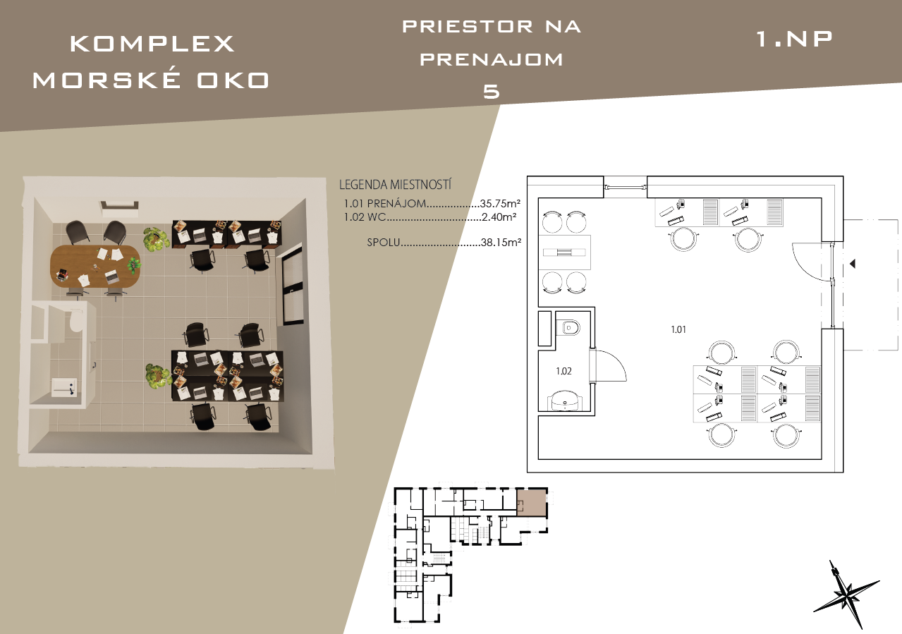 Ponúkame Vám moderné obchodné priestory v úplne novom polyfunkčnom projekte MORSKÉ OKO, ktorý vyrastá v samotnom centre Sobraniec.